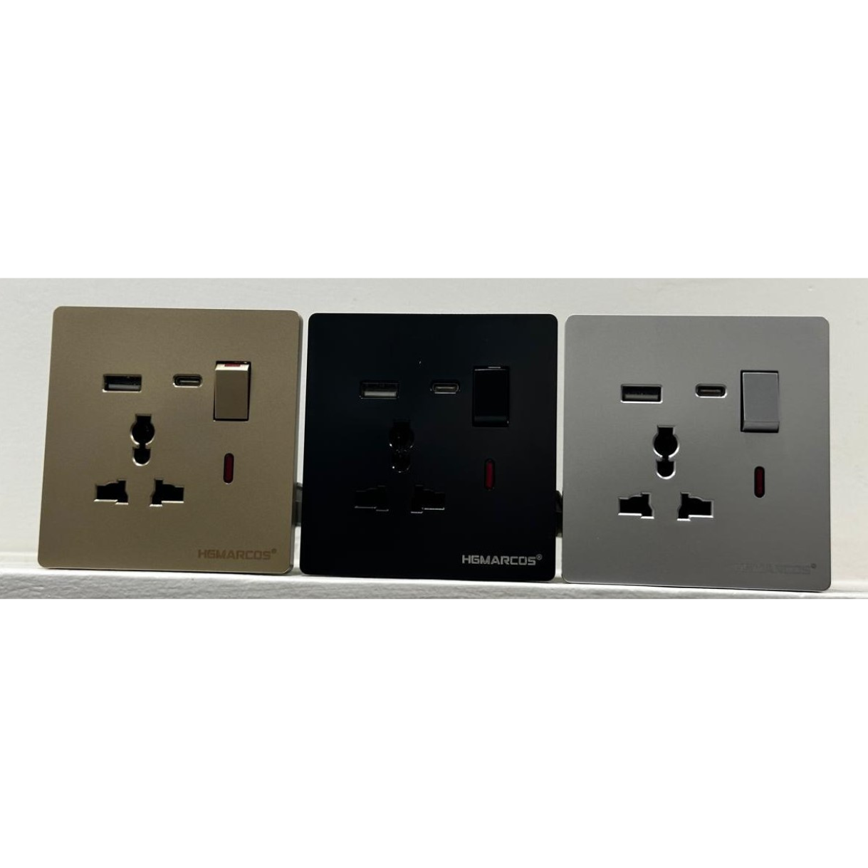 Modern single wall socket with built-in USB-A and USB-C ports for convenient, fast charging without extra adapters. Available in Black, Silver and Gold Colours.